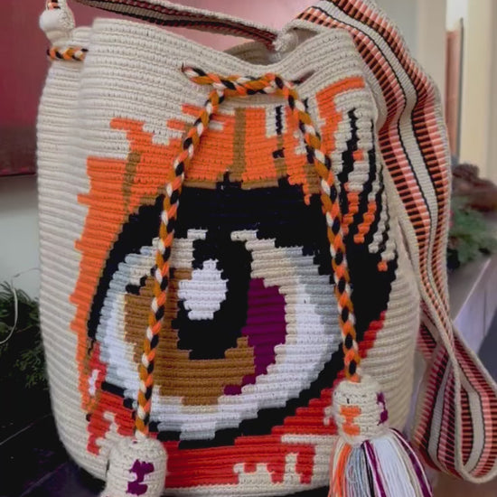 Costa Wayuu Large Lucky Eye Crochet Wayuu Bag – Boho Shoulder Purse