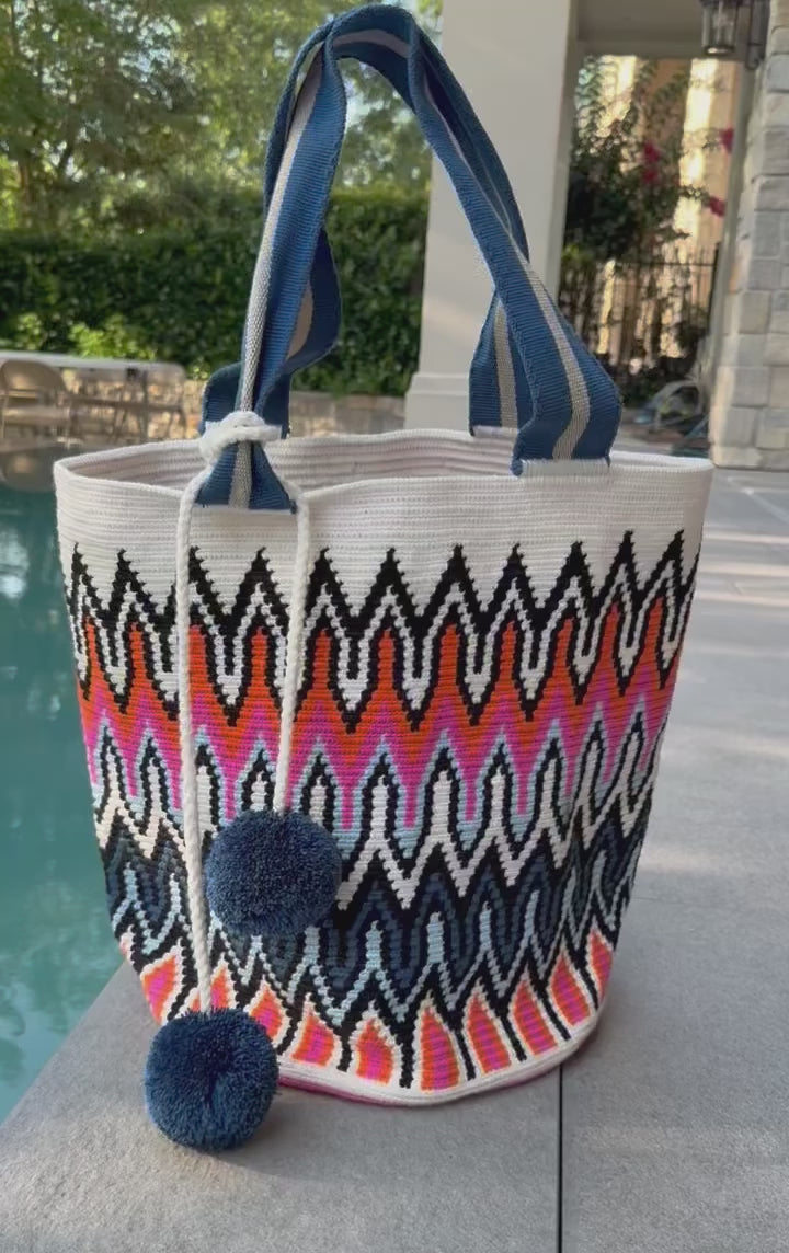 Bursting with color and joy, this oversized Wayuu bag is a true celebration of Colombian craftsmanship.